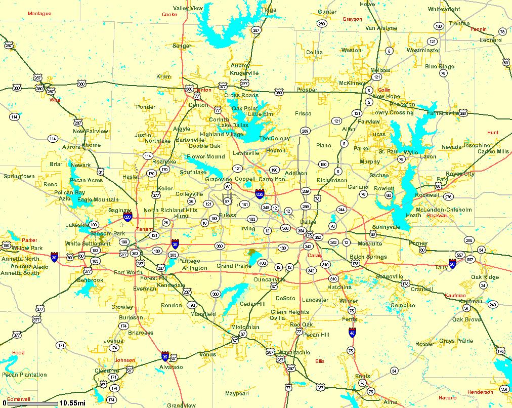 Dallas, Tarrant, Denton,